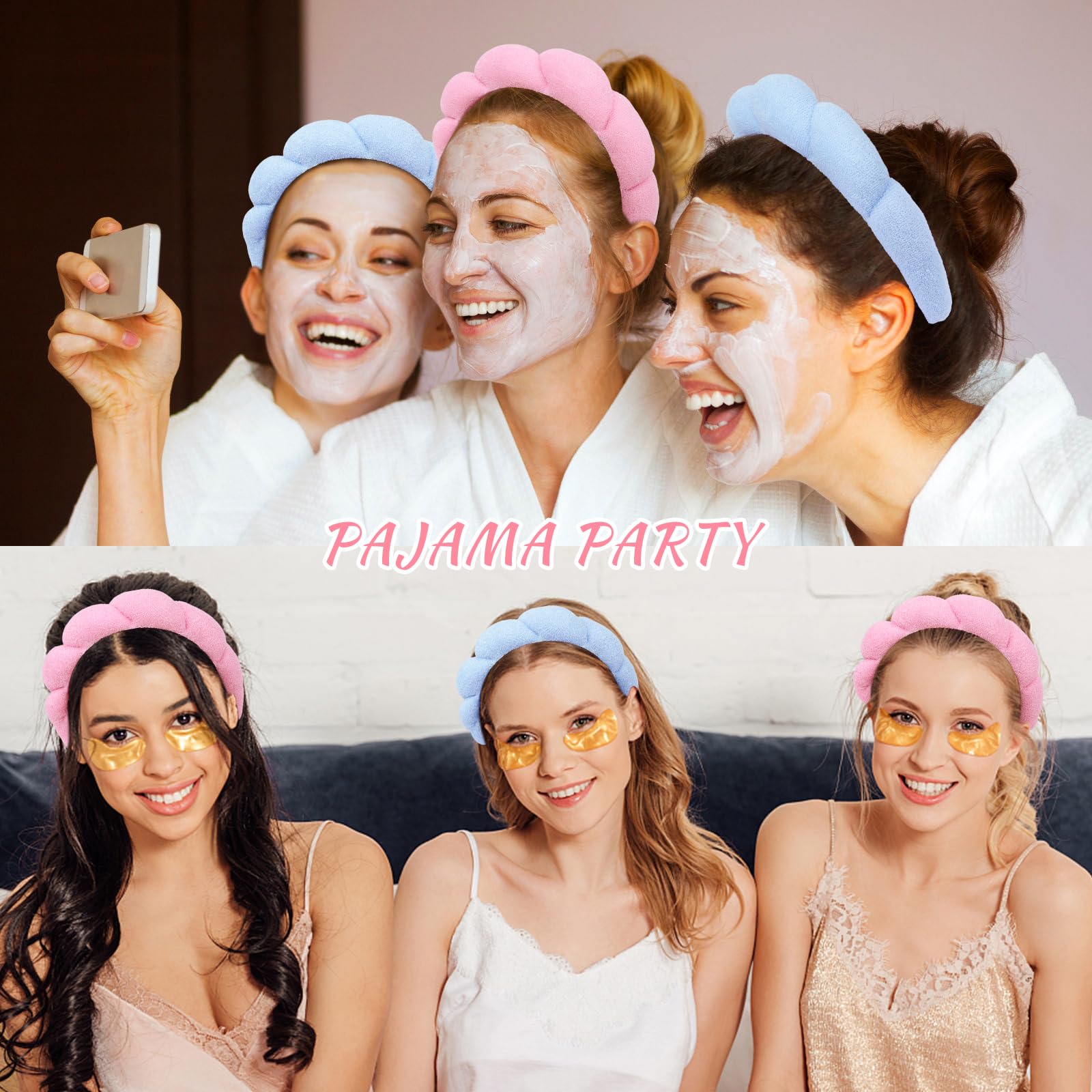 Wecoe 2pcs Skincare Headband for Washing Face, Makeup, Spa - Cute Pink Blue Puffy Sponge Bubble Hair Accessories for Women, Girls, Kids, Teens - Gifts—