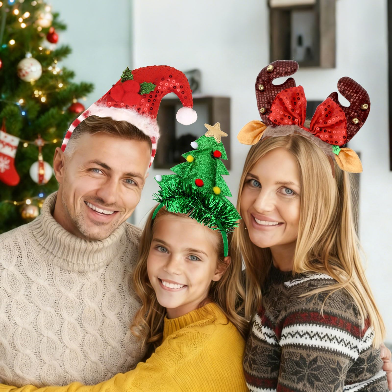 - 3 Unique Festive Designs: This set includes 3 themed headbands: sequined Santa hat (with holly accents), tinsel Christmas tree (with pom-pom decor), and sequined reindeer antlers (with bow detail)—each captures distinct Christmas charm.