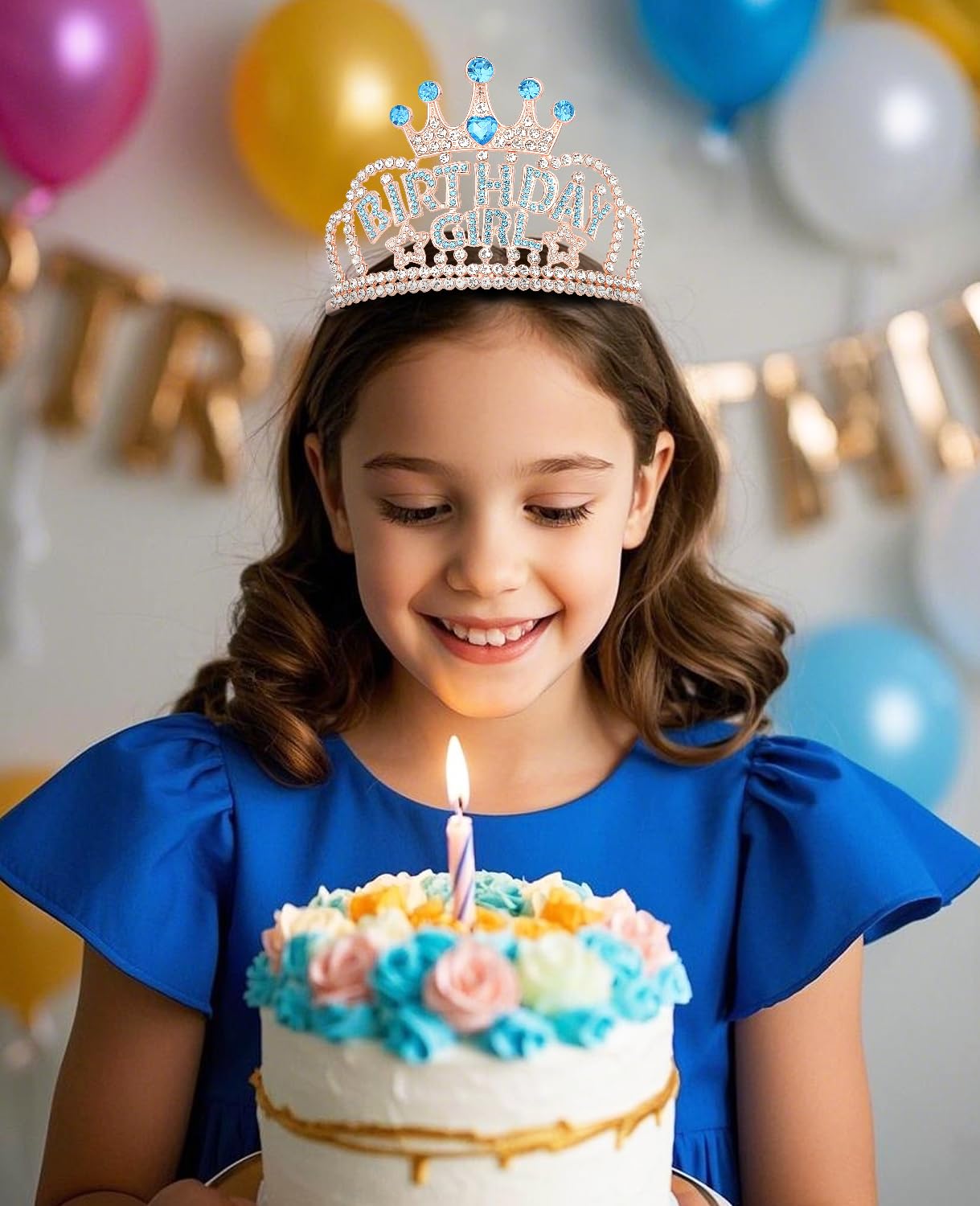 Wecoe Blue Birthday Girl Crown 16th 18th 21st 25th Rhinestone Tiara Happy Birthday Decorations Party Favors Gifts
