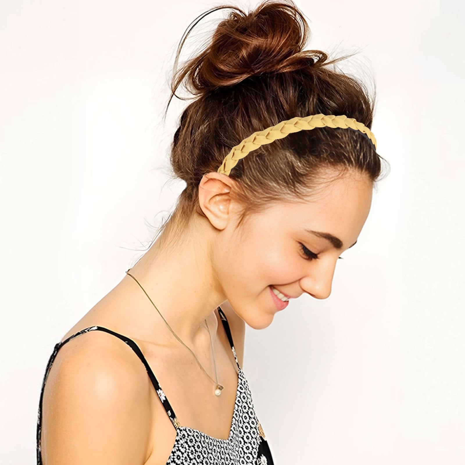 - Neutral-Tone Braided Design: This set includes 5 braided headbands (black, dark brown, light brown, ginger yellow, beige) — featuring a tight, textured braid for a polished, casual-chic look.